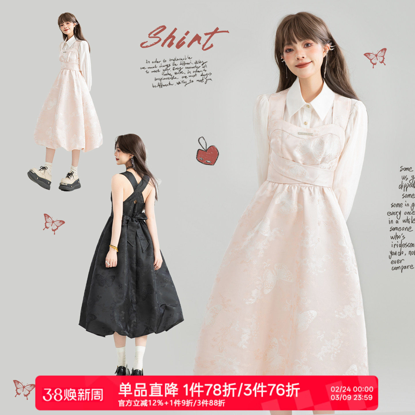 - 吊带连衣裙学院风