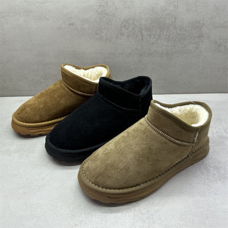 男士羊毛棉鞋冬季防滑防泼水雪地靴低帮一脚蹬男棉鞋东北保暖男鞋