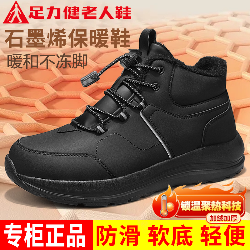 足力健老人鞋中老年2026年冬季新款石墨烯加绒保暖休闲爸爸男棉鞋