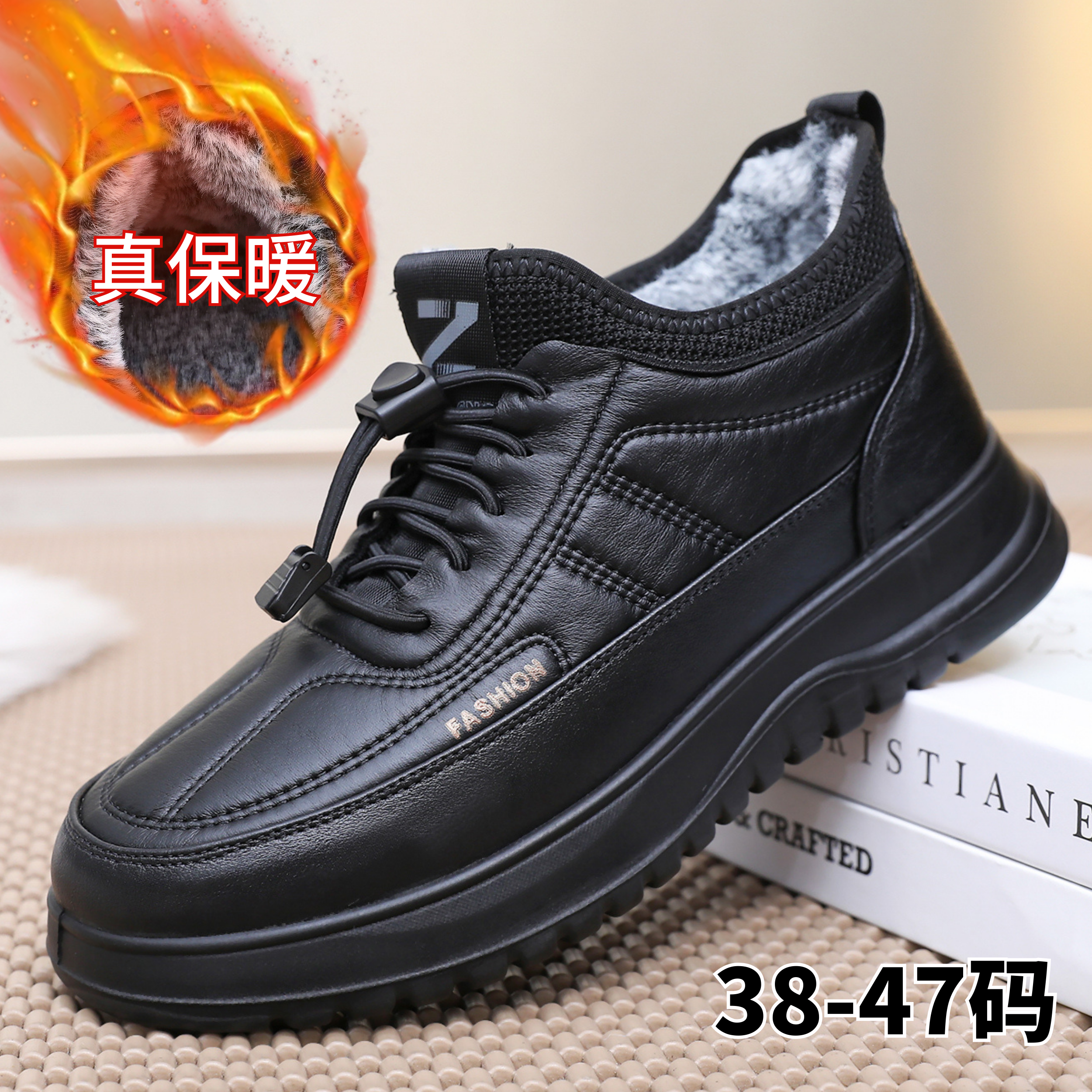 - 冬季男皮鞋加绒保暖棉