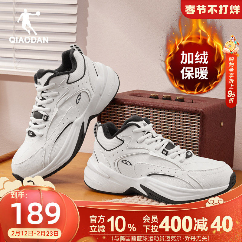 乔丹小千禧加绒保暖休闲鞋男棉鞋2025冬季新款老爹鞋革面运动鞋子