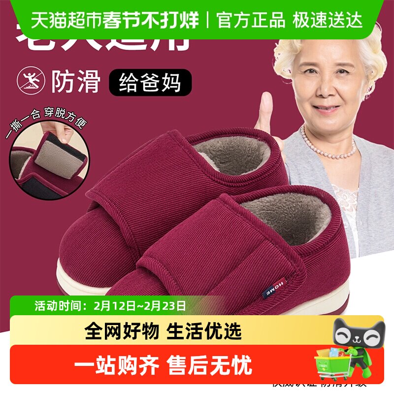 利达妮中年老人棉拖鞋女士冬外穿居家防滑耐磨包跟加绒保暖男棉鞋