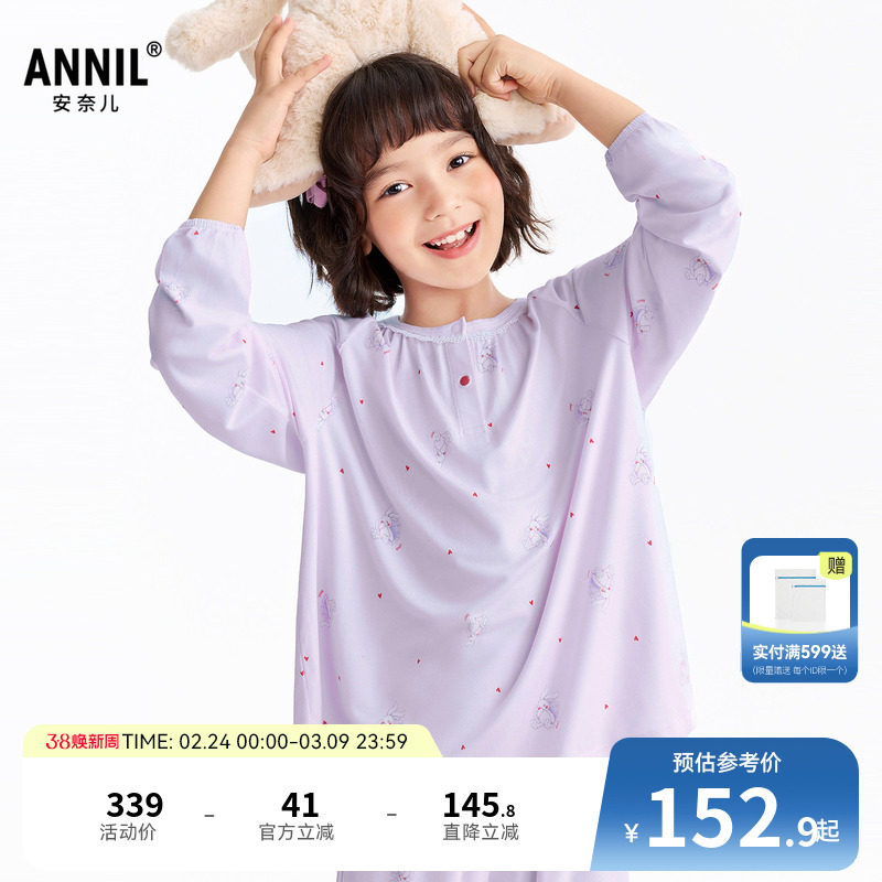 安奈儿童装女童家居服套装2026春新款弹力甜美可爱时尚睡衣睡裤