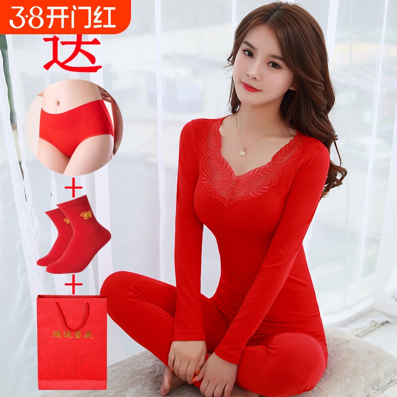 恒源祥女士保暖内衣本命年套装大红色结婚男秋衣秋裤纯棉2026马年