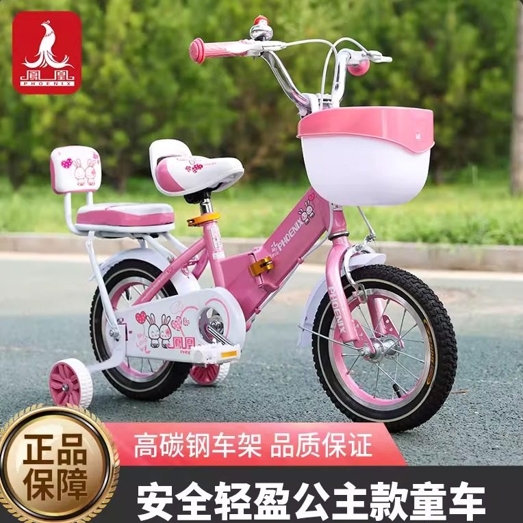 凤凰儿童自行车女孩3岁到6岁8-12岁宝宝脚踏车男孩单车女童公主款