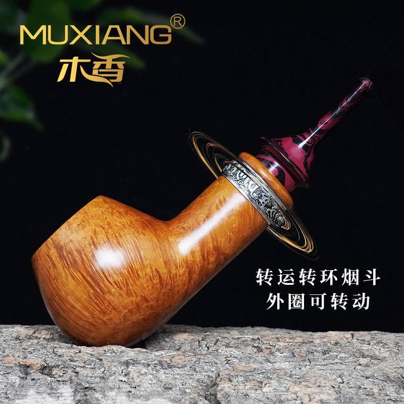 木香进口石楠木烟斗男士手工拼花实木橡果斗传统老式过滤专用烟具