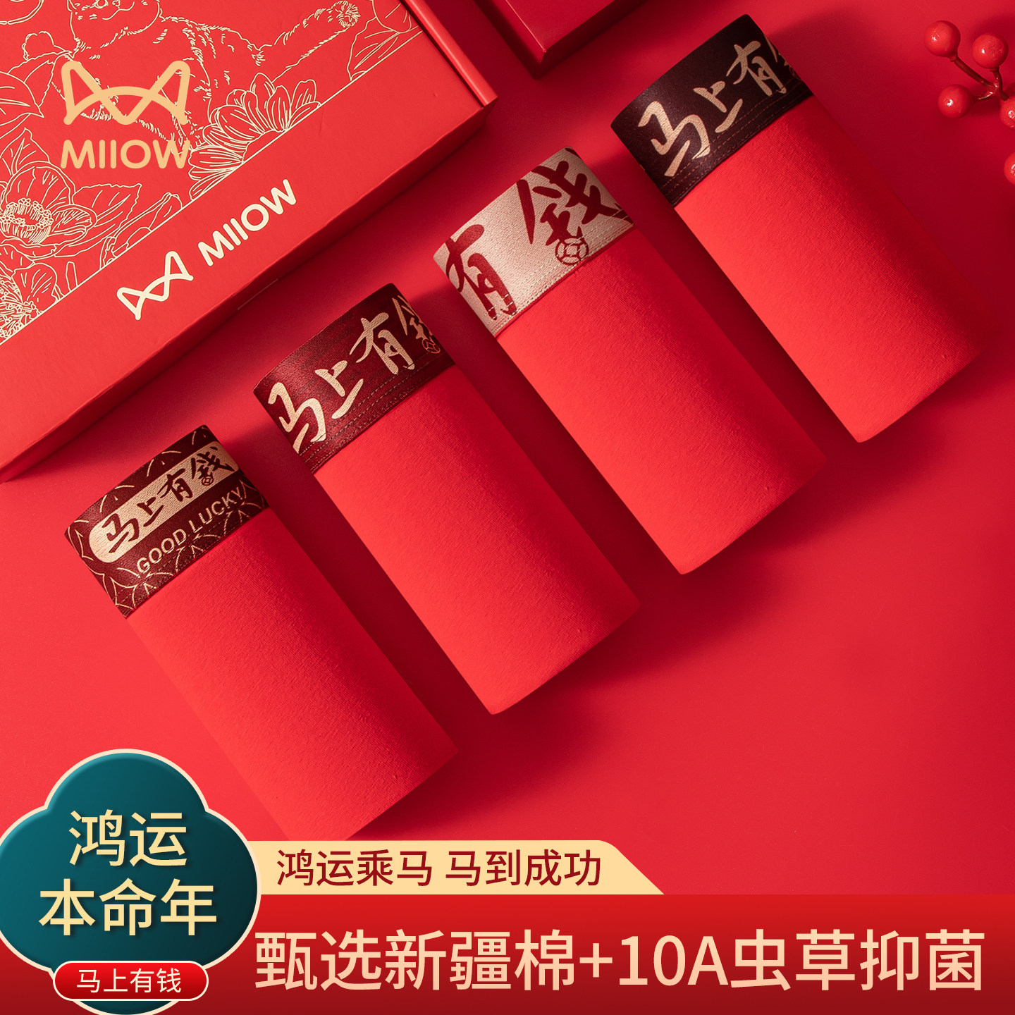 猫人本命年男士内裤纯棉大红色男款短裤2026马年结婚礼物四角裤头