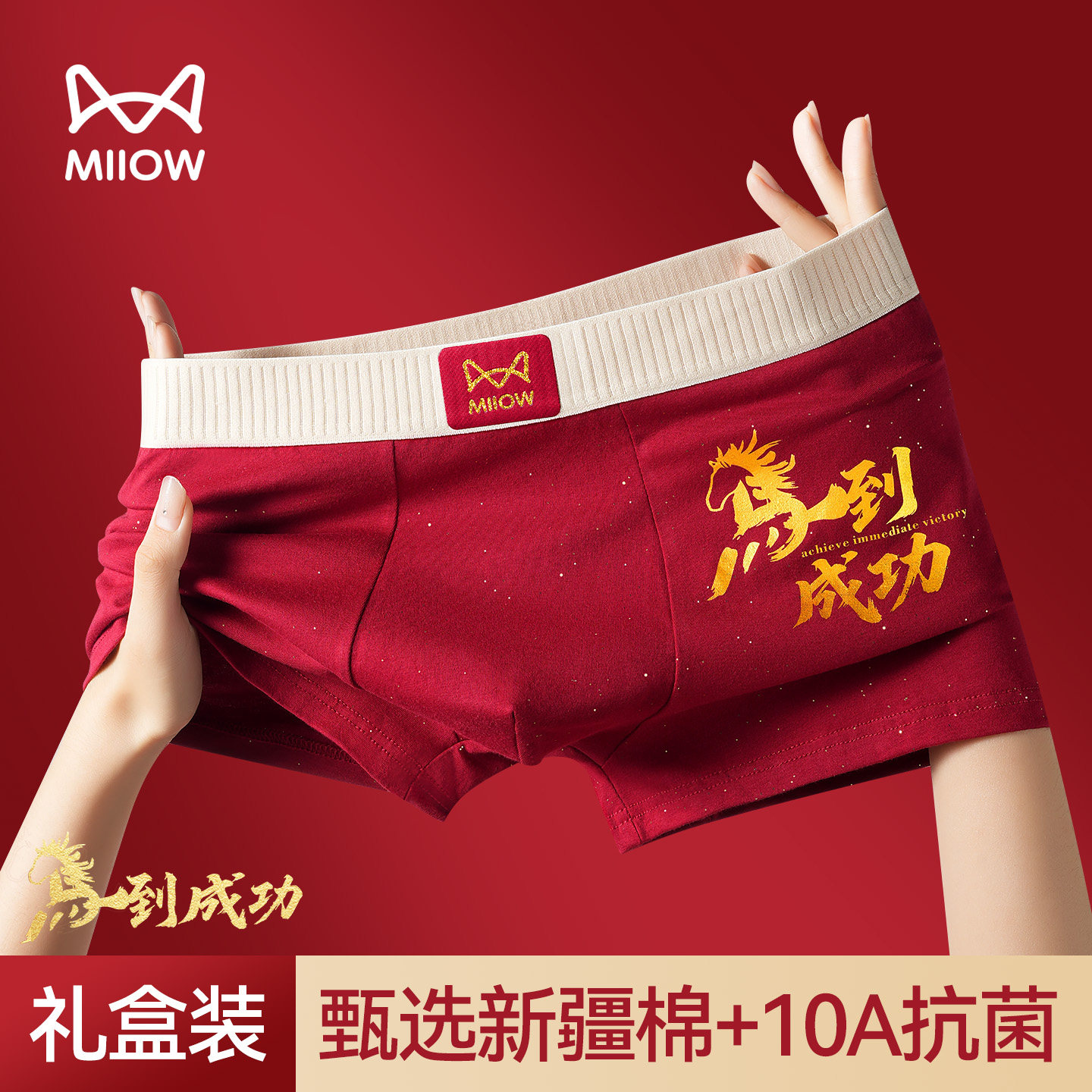 猫人男士红色内裤纯棉抗菌裆本命年属马年结婚礼物袜子平角裤礼盒