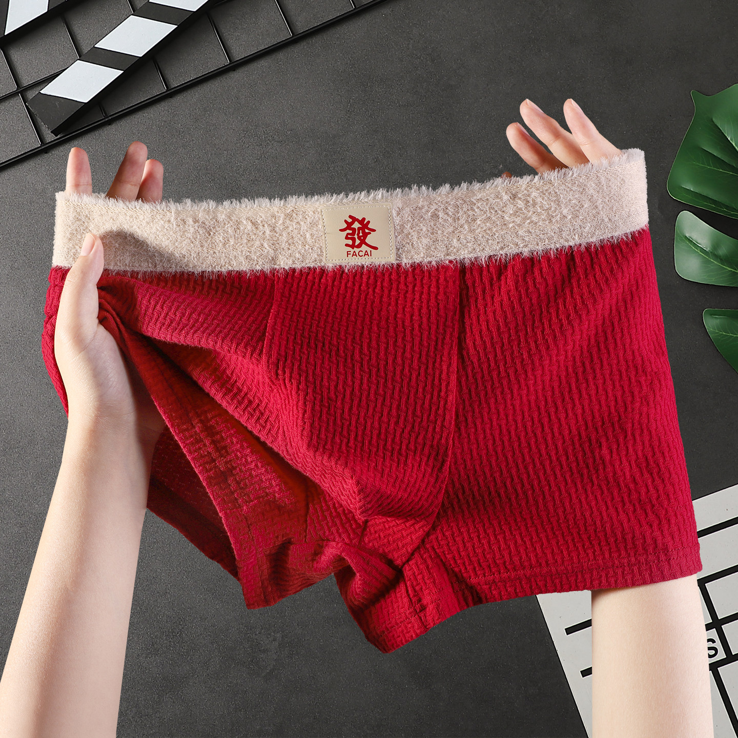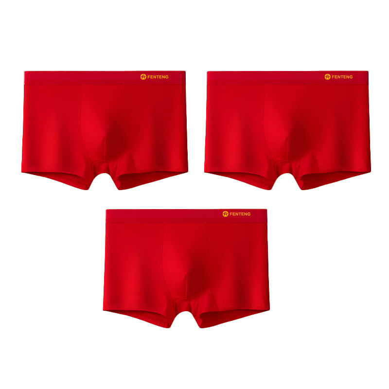 本命年红色内裤男纯棉大红色平角裤结婚蛇年抗菌新年男士红色内裤