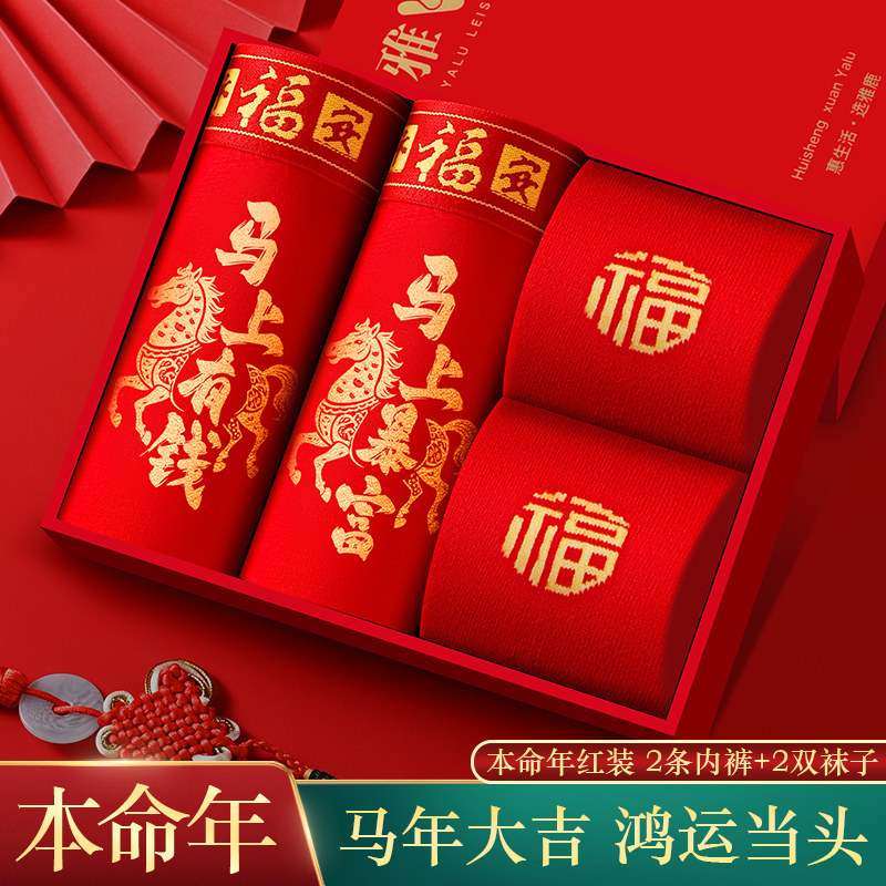 本命年男士红色内裤纯棉红袜子2026马年新年礼盒套装礼物送男友潮