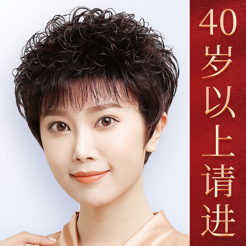 美禾 短发假发女全头套透气妈妈真发发套 时尚中老年短卷发假发套