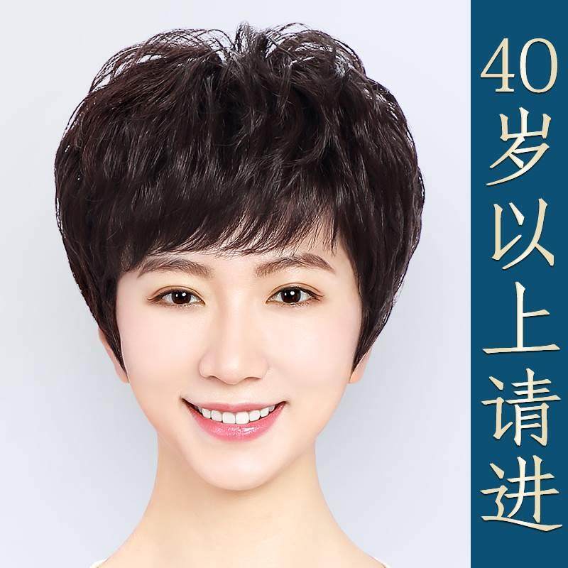 妈妈假发短发女短卷发圆脸真人发丝自然中老年假发真发发型全头套