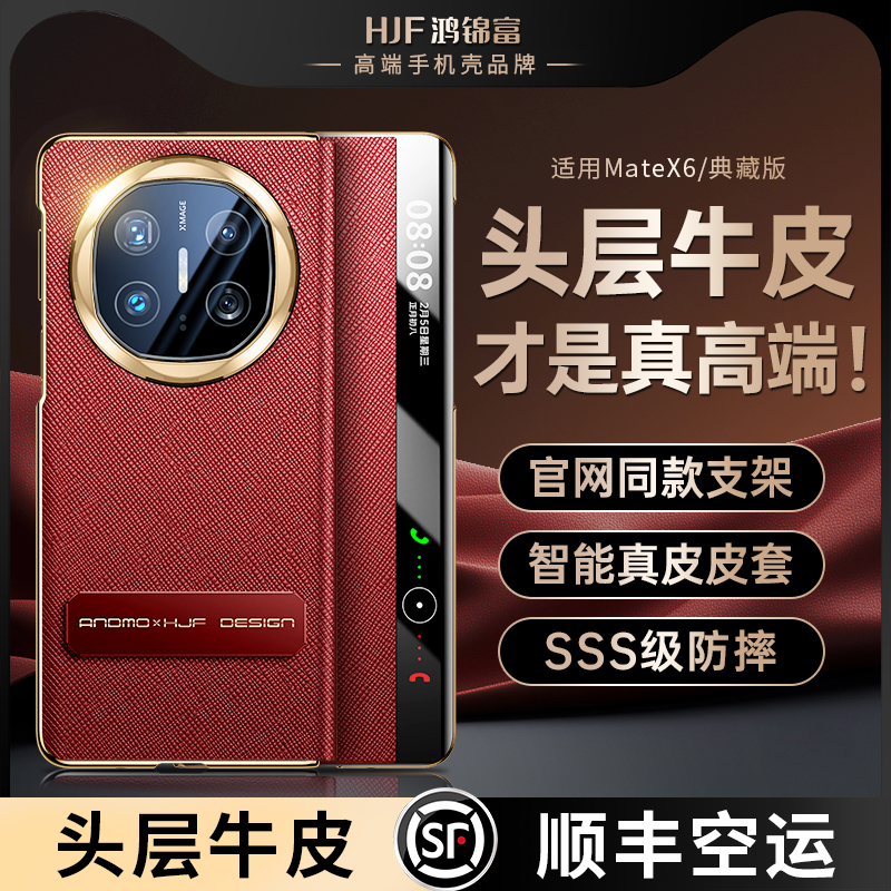 [顺丰]牛皮适用华为x6手机壳新款matex6典藏版保护壳真皮腕带支架磁吸翻盖高端超薄镜头全包matex6折叠屏外壳