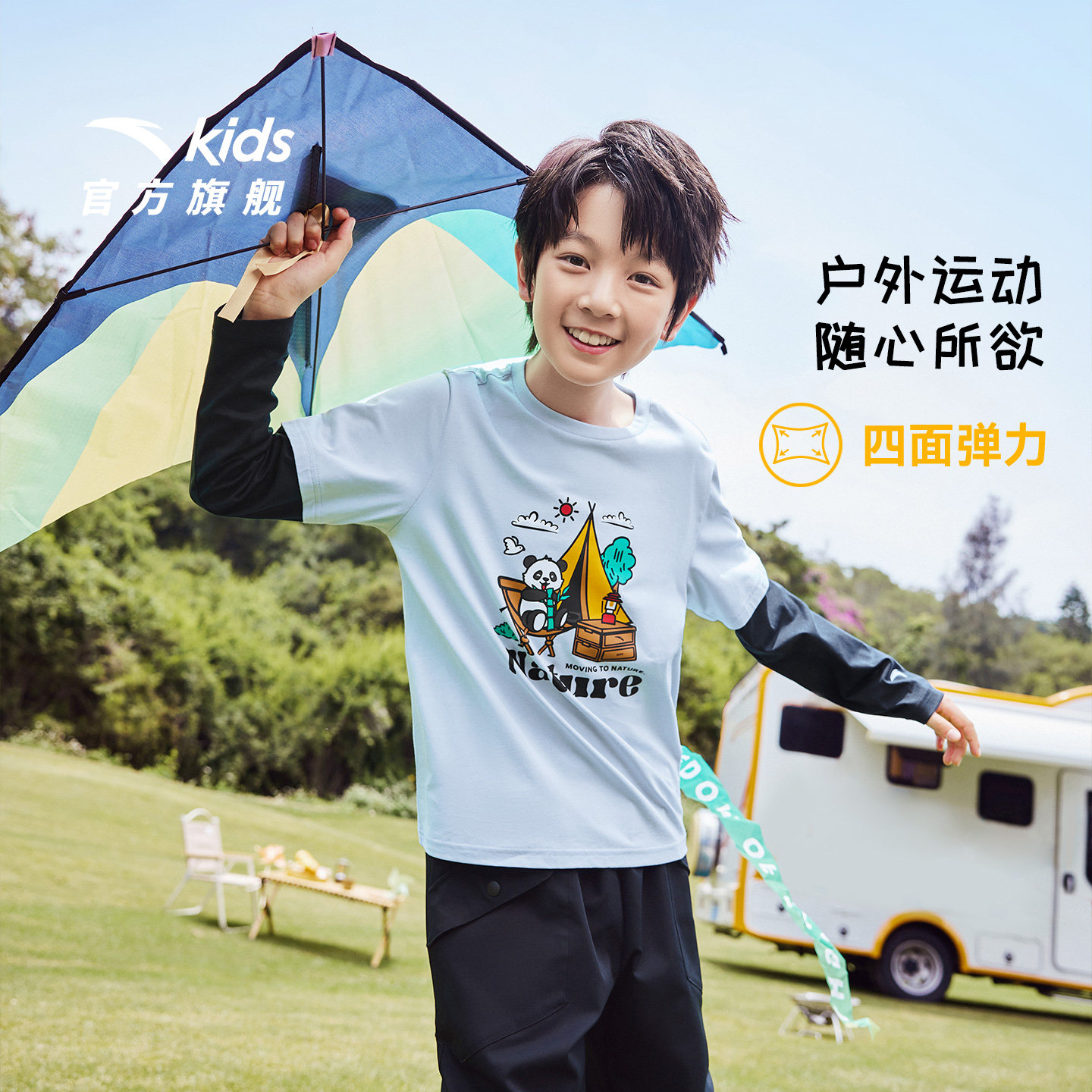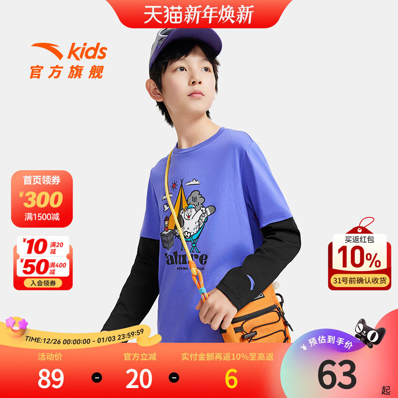 安踏儿童男女童长袖衫2025秋季新款假两件中大童纯棉长T恤上衣