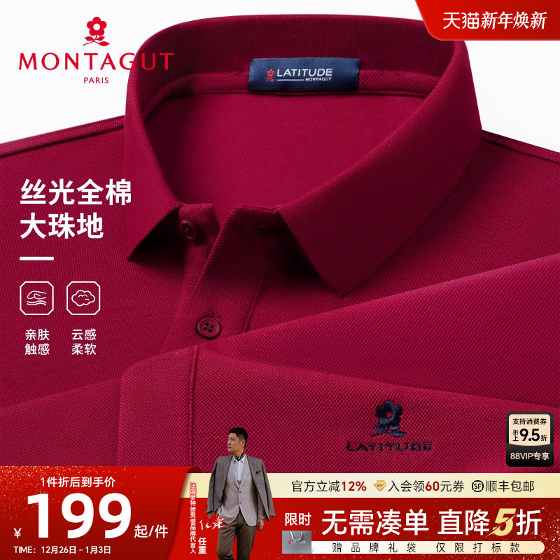 [100%长绒棉]梦特娇男士长袖Polo衫翻领春秋丝光纯棉T恤爸爸婚宴J