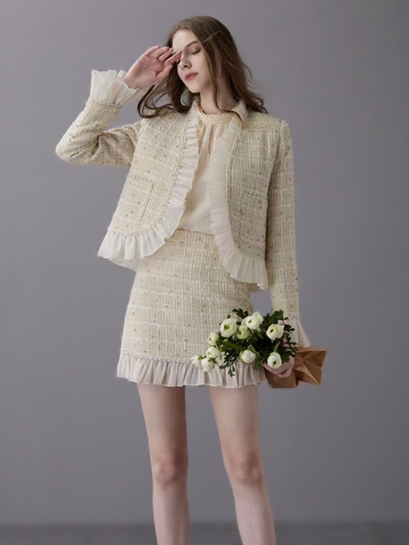 【现货】mi2naa名媛小香风套装25春新款复古气质衬衫包裙两件套