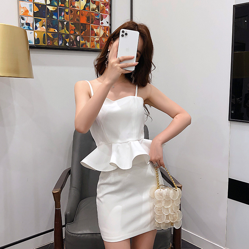 2019欧美时装秀卡戴珊同款紧身两件套装 吊带衣+半身包裙裙