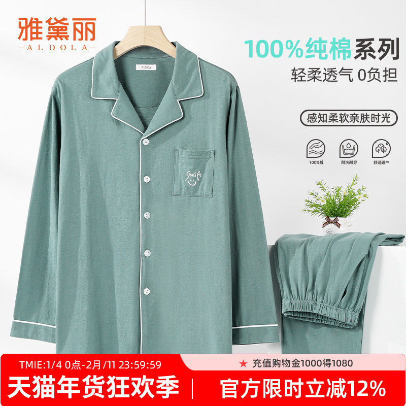 雅鹿男士睡衣男款长袖家居服纯棉布料100%全棉2025新款男生秋冬季