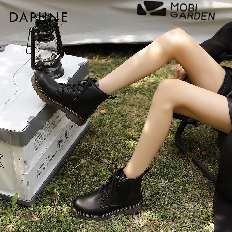 达芙妮时尚马丁靴女2025年秋冬百搭靴子加绒工装靴休闲短靴单靴
