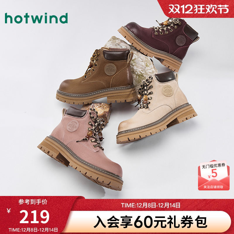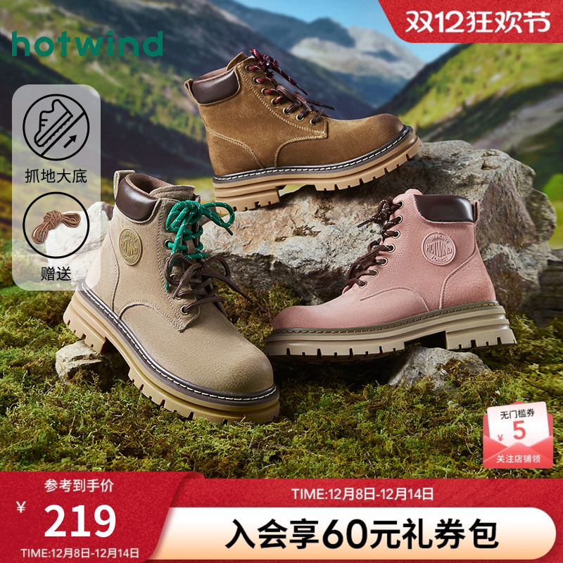 热风加绒厚底马丁靴女25冬新款英伦风户外工装靴子百搭短靴女鞋子