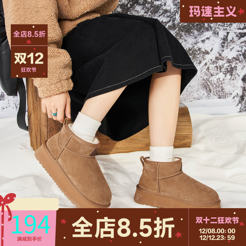 玛速主义2025新款保暖加绒厚底雪地靴女冬季百搭短靴休闲平底棉鞋