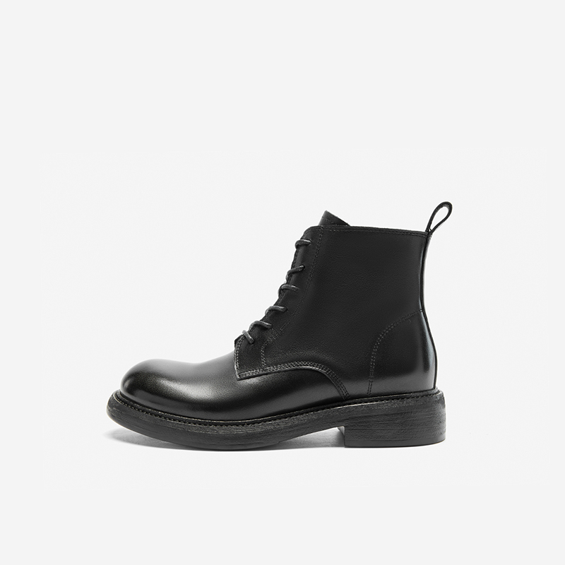 吴大叔2025秋冬复古金属扣饰真皮短靴气垫缓震粗跟时尚百搭短靴女
