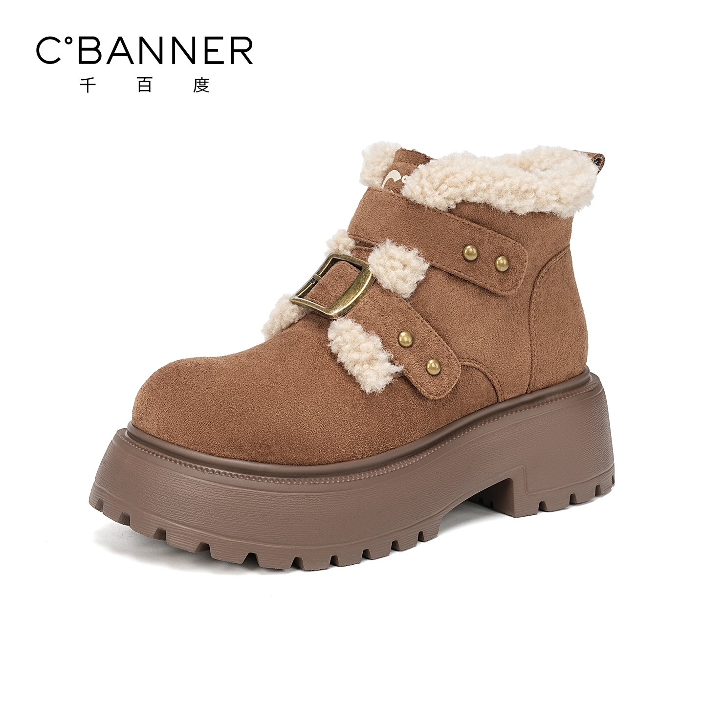 千百度厚底雪地靴女冬季2025新款加绒加厚保暖羊毛棉鞋百搭短靴女