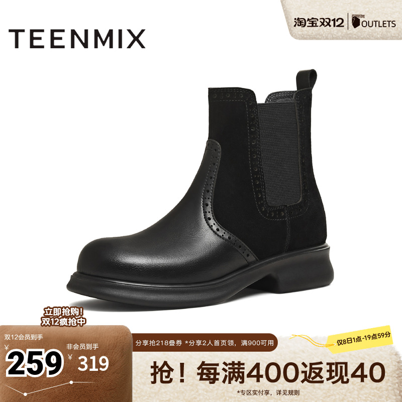 天美意2025冬新款平跟英伦复古百搭短靴女切尔西靴KQX23DD5
