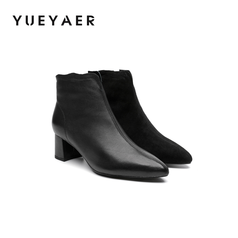 月芽儿法式尖头气质百搭短靴女款2025冬季新款巨好看粗跟黑色靴子