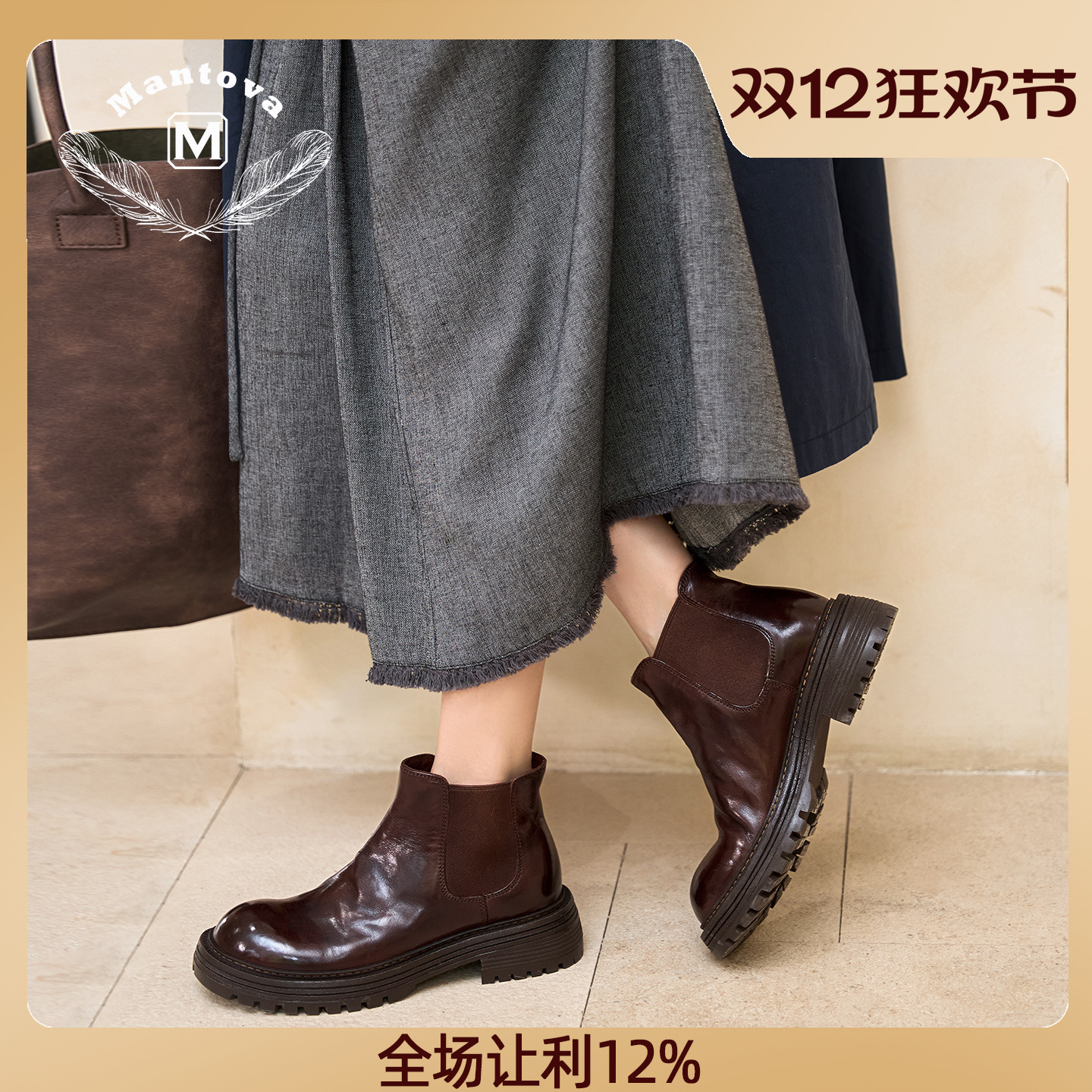 Mantova曼托瓦切尔西靴手工马皮马丁靴秋冬美拉德复古百搭短靴女