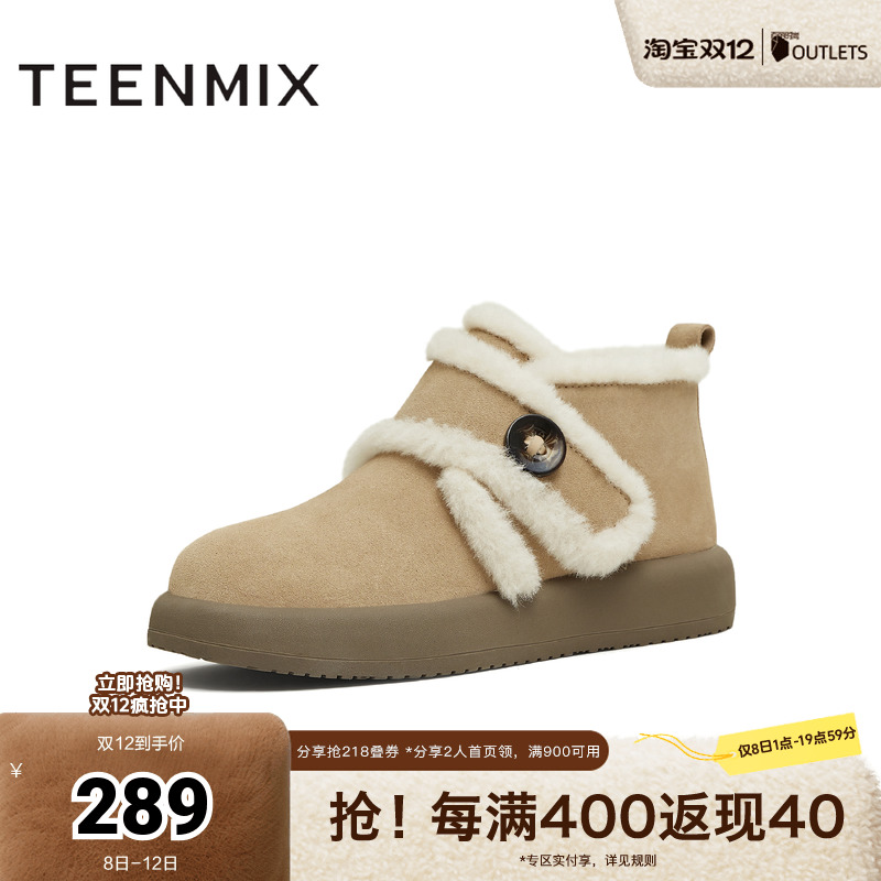 天美意2025冬新款复古毛绒保暖舒适百搭短靴女雪地靴KXD76DD5