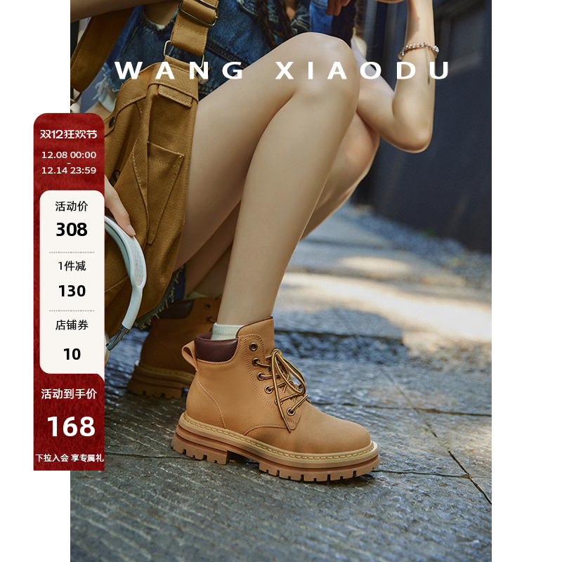 吴大叔2025秋冬复古百搭短靴女厚底增高气垫缓震时尚显瘦马丁靴