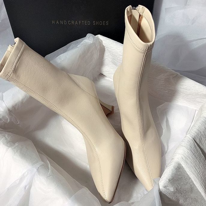 2025新款尖头高跟气质瘦瘦靴细跟真皮简约弹力靴韩版百搭短靴女