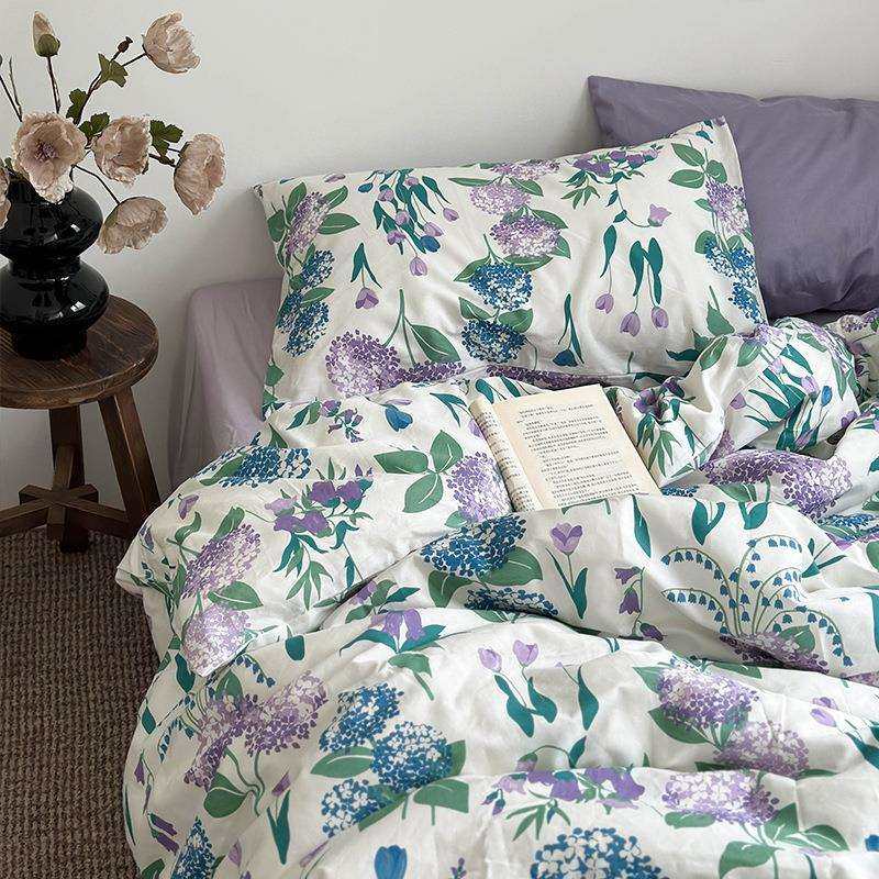 韩式田园小碎花紫纯棉全棉被套单件学生双人床上三四件套被罩单人