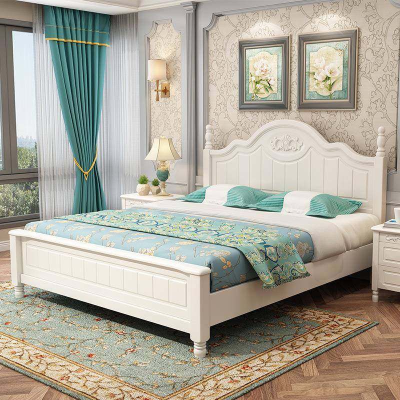 美式实木床1.8米双人主卧室床1.5m公主床白色现代简约韩式田园床