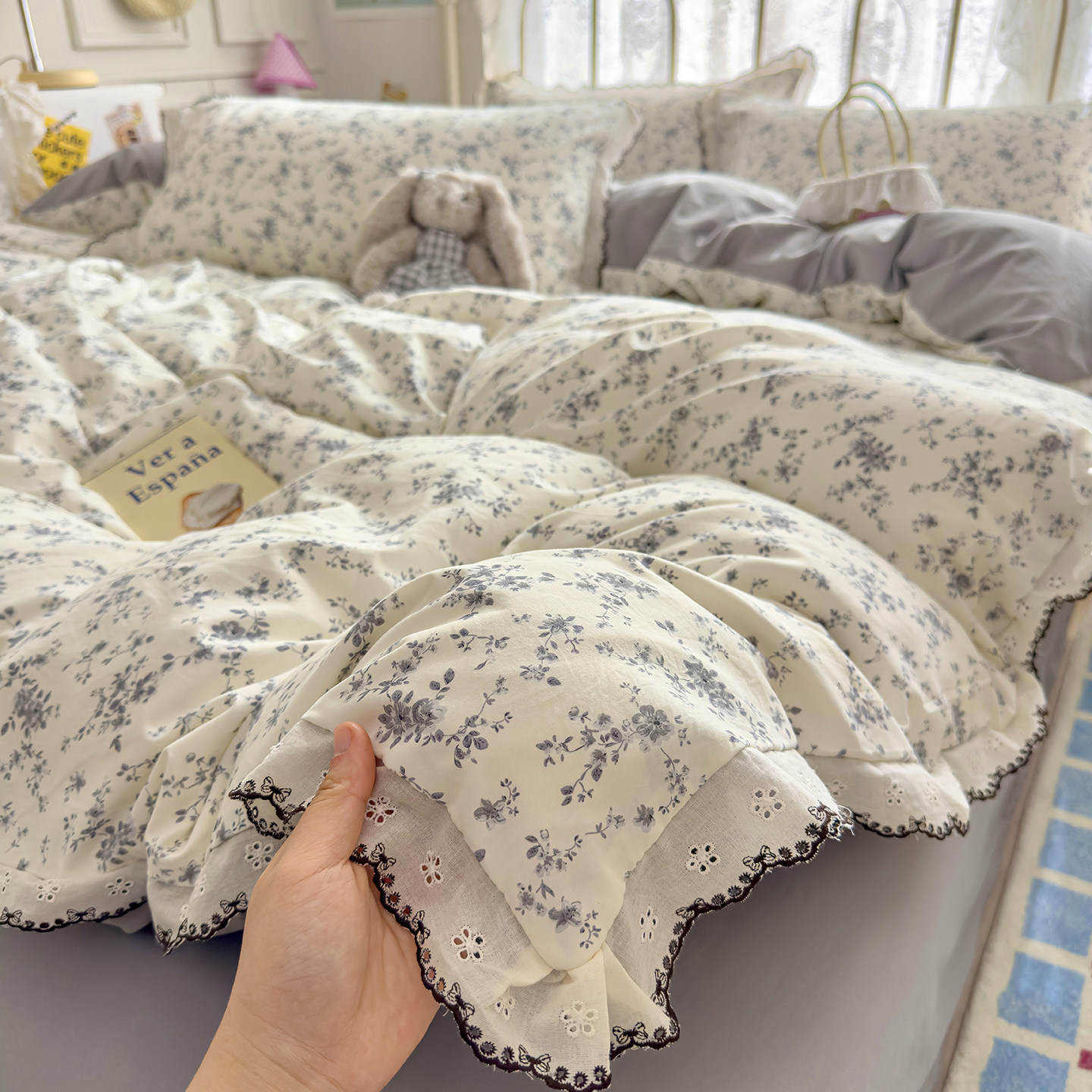 田园风碎花水洗棉床上四件套韩式花边被套宿舍床单三件套非全纯棉