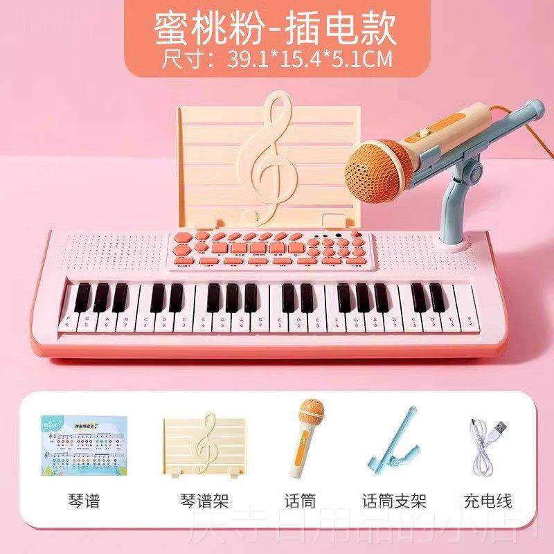 37键儿童电子琴玩具带话筒女孩宝宝1一3岁初学者家用小钢琴可弹奏