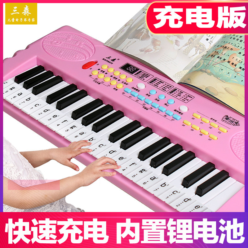 高档儿孩童电琴初学男女家用带话筒可弹奏37键子宝宝琴玩具生钢日
