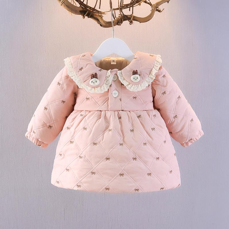 女宝宝韩版刺绣小兔子加厚裙子时尚洋气绗棉娃娃领长袖连衣裙棉袄