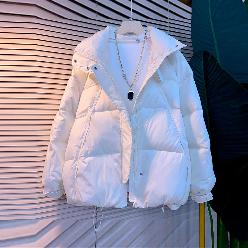 韩版时尚白色毛领连帽长袖棉服外套女2025冬季新款气质保暖上衣潮