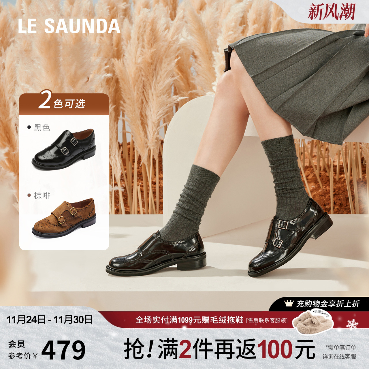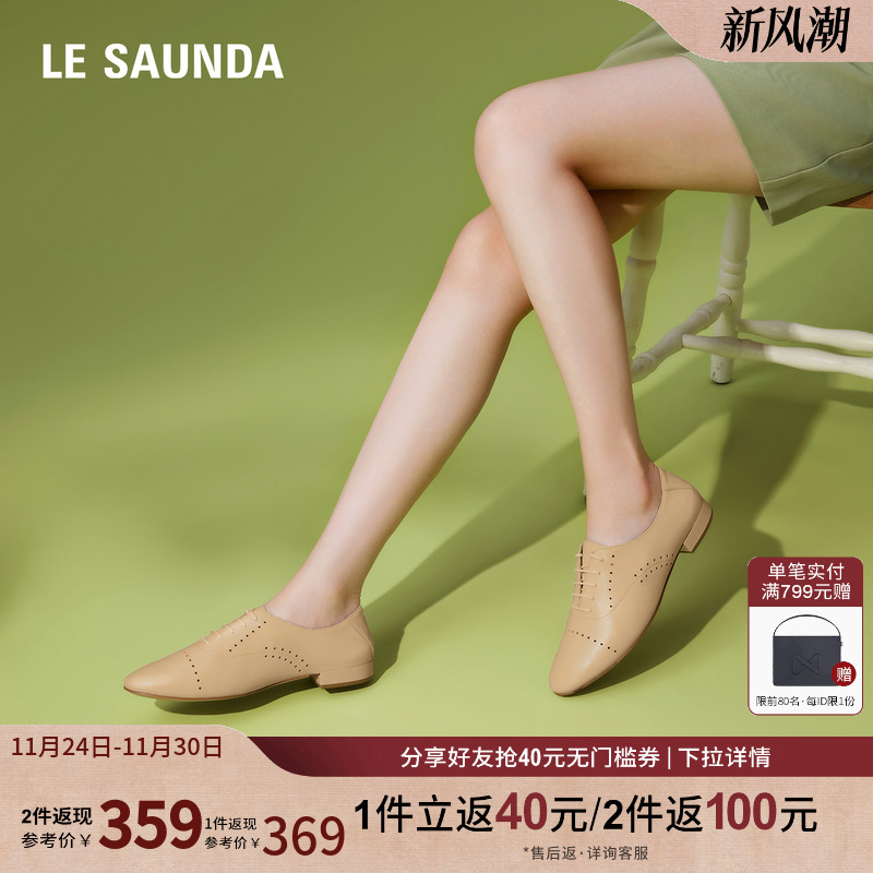莱尔斯丹奥莱复古系带圆头低帮布洛克深口牛津女单鞋通勤5M14401