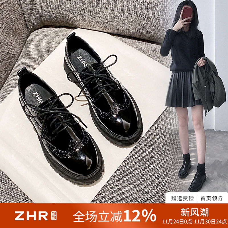 ZHR2023年夏季新款单鞋复古厚底布洛克女鞋百搭系带英伦风小皮鞋