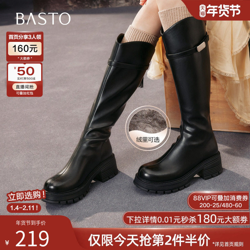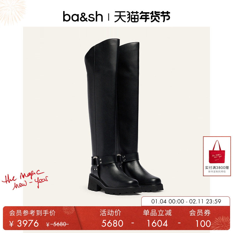 bash简约复古鞋履女士长筒骑士靴粗跟圆头靴子2H24CIKE