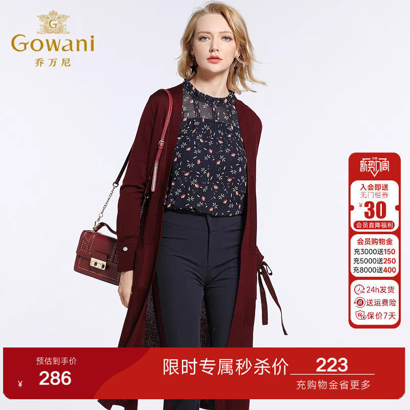 乔万尼商场春装新款羊毛衫气质修身气质中长针织开衫外套女薄韩版