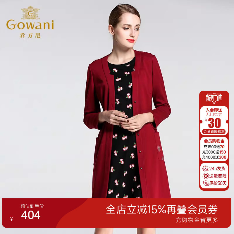 乔万尼女装秋装新款休闲修身单排扣红色羊毛针织衫外套女中长款薄