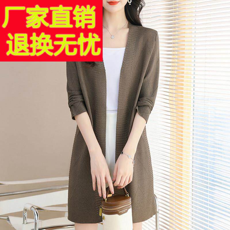 桑蚕丝针织开衫中长款夏季2025新款薄款女冰丝外搭防晒外套春秋