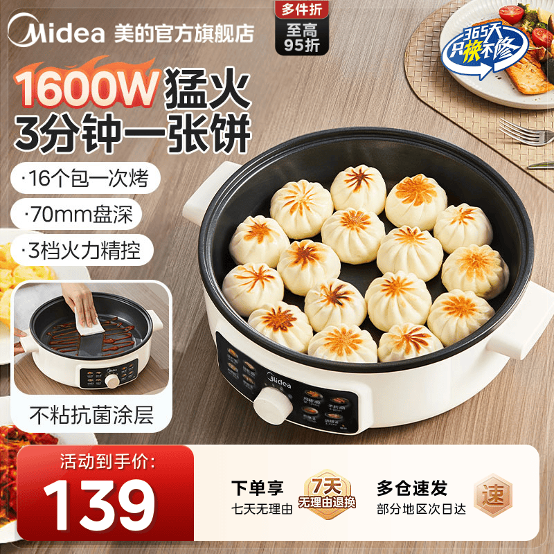 美的电饼铛家用双面加热加深加大多功能家庭烙饼专用官方旗舰正品