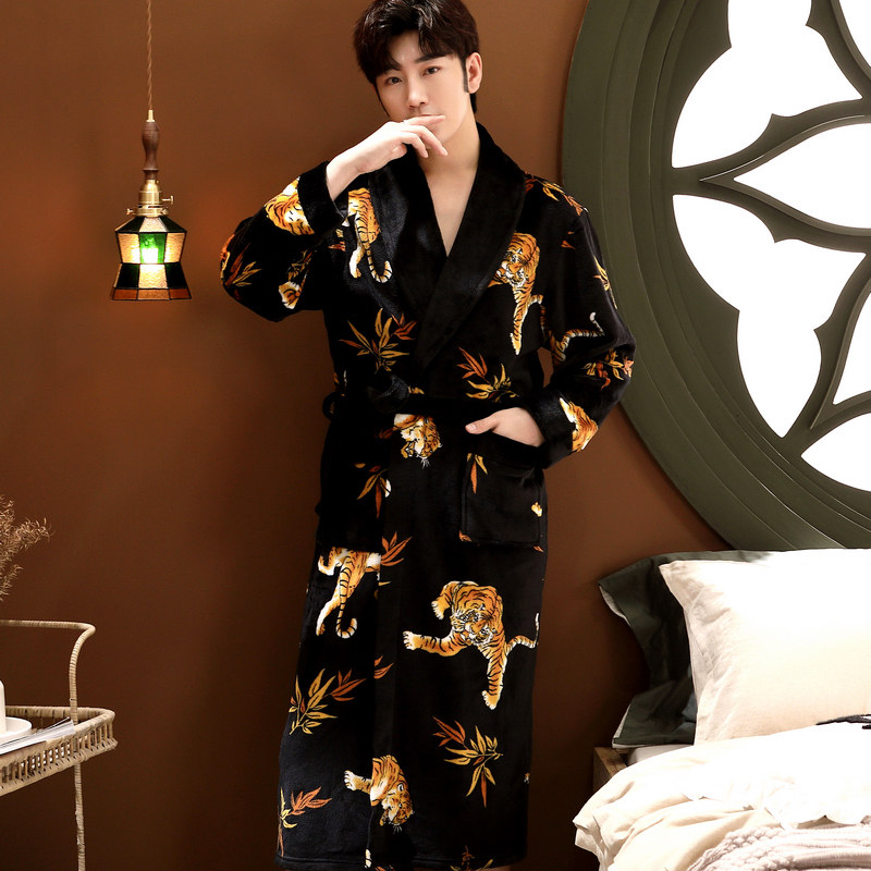 法兰绒睡袍男冬季加厚珊瑚绒睡衣女情侣长款加绒浴袍秋冬龙袍浴衣