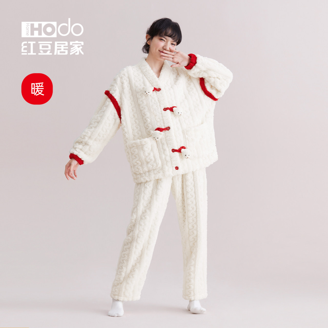【暖暖绒】红豆居家冬季加厚珊瑚绒睡衣女可爱小熊加厚保暖家居服