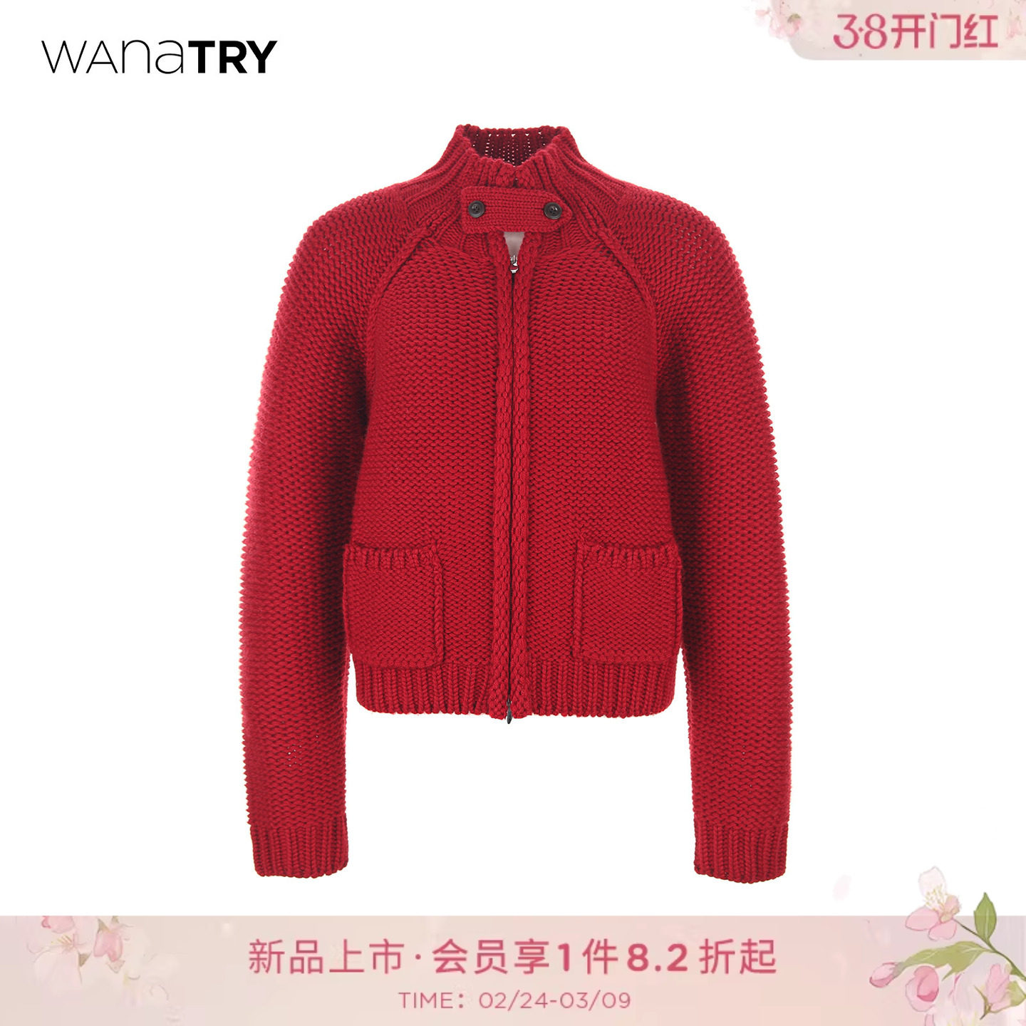 wana try羊毛粗针针织外套红色2025冬季新款精致慵懒感女款上衣